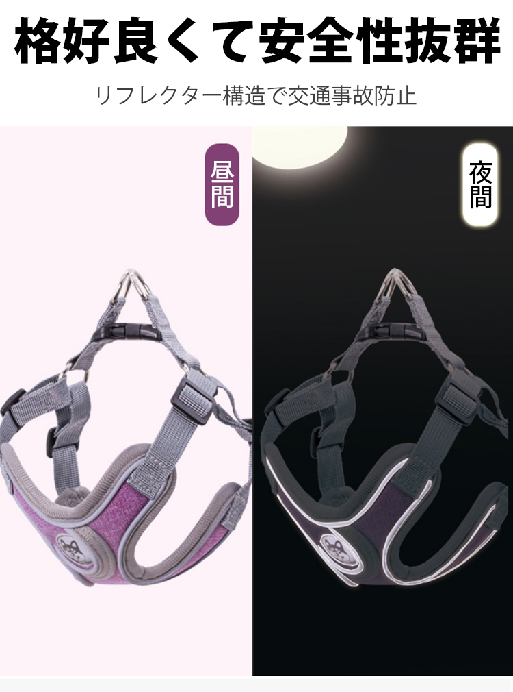 いきなりの暴れ防止 リフレクター 夜間も安心できる どんな犬でも使える 通気性がいい  安全性抜群  ペットに傷つかない